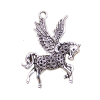 Pingentes de Prata Tibetana Cor Prata Antiga, Tema Cavalos, Unicórnios e Animais Voadores, 52x42mm, para Fabricação de Joias e Artesanato DIY