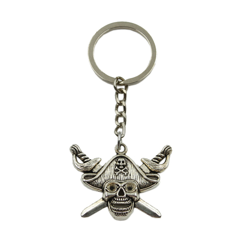 Anahtarlık 45x34mm antik gümüş bronz kaplama kafatası korsan bayrağı çapraz kılıç Metal alaşım anahtarlık DIY takı yapımı için