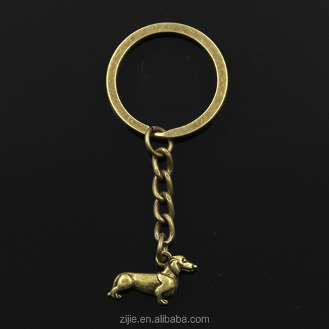 Moda 30mm anahtarlık Metal anahtarlık anahtarlık takı antik bronz kaplama köpek Dachshund 20*15mm kolye
