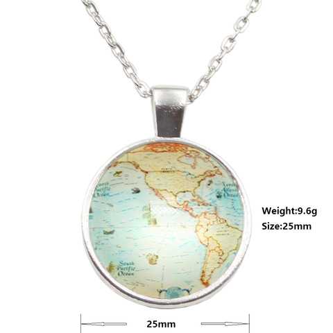 विंटेज ग्लोब हार, ग्रह पृथ्वी विश्व मानचित्र कला हार पृथ्वी प्रिंट ग्लास हार