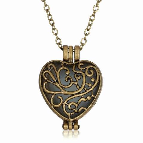 สร้อยคอเรืองแสงสีฟ้าในที่มืดโบราณทองกลวงหัวใจสร้อยคอเรืองแสง noctilucent ของขวัญคริสต์มาสสำหรับแฟนสาวแม่ของเธอ